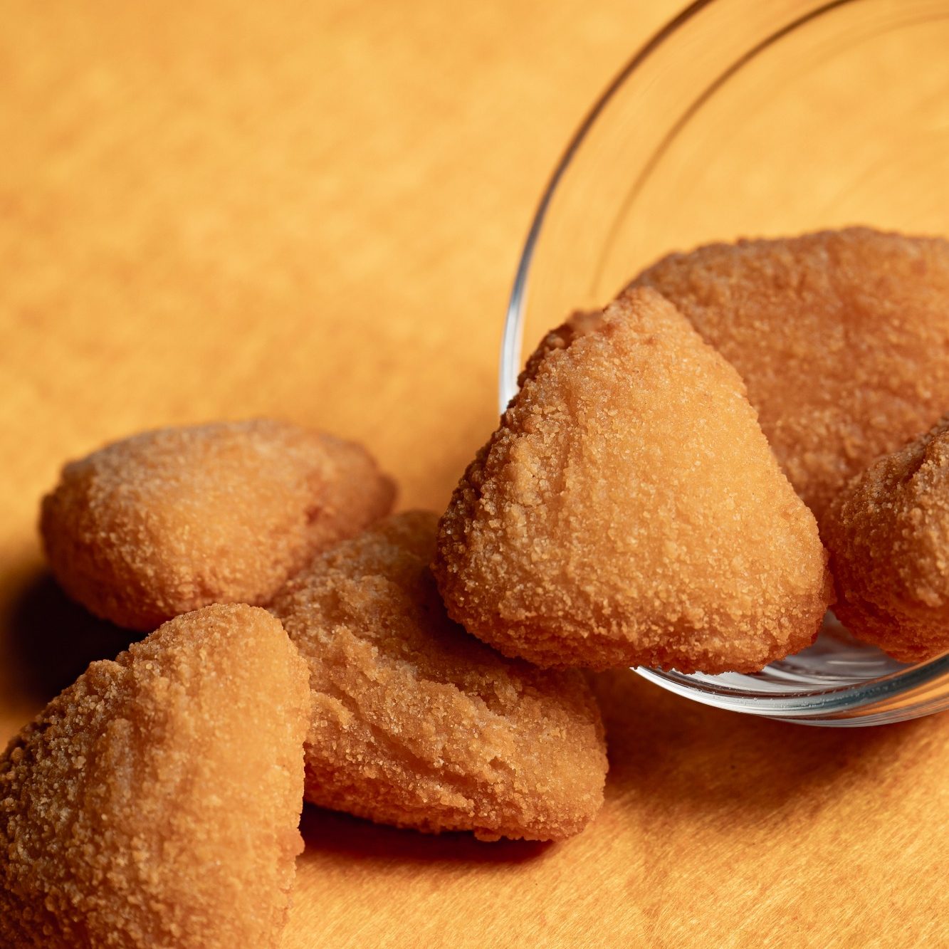 Crujiente por fuera, cremoso por dentro. Al fundirse libera todo su sabor, convirtiendose en el bocado perfecto para acompañar.